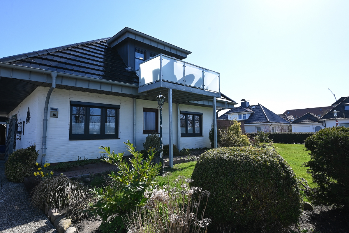 Das "Haus im Rosengrund" liegt in einer wenig befahrenen Straße im Büsumer Kurviertel.
